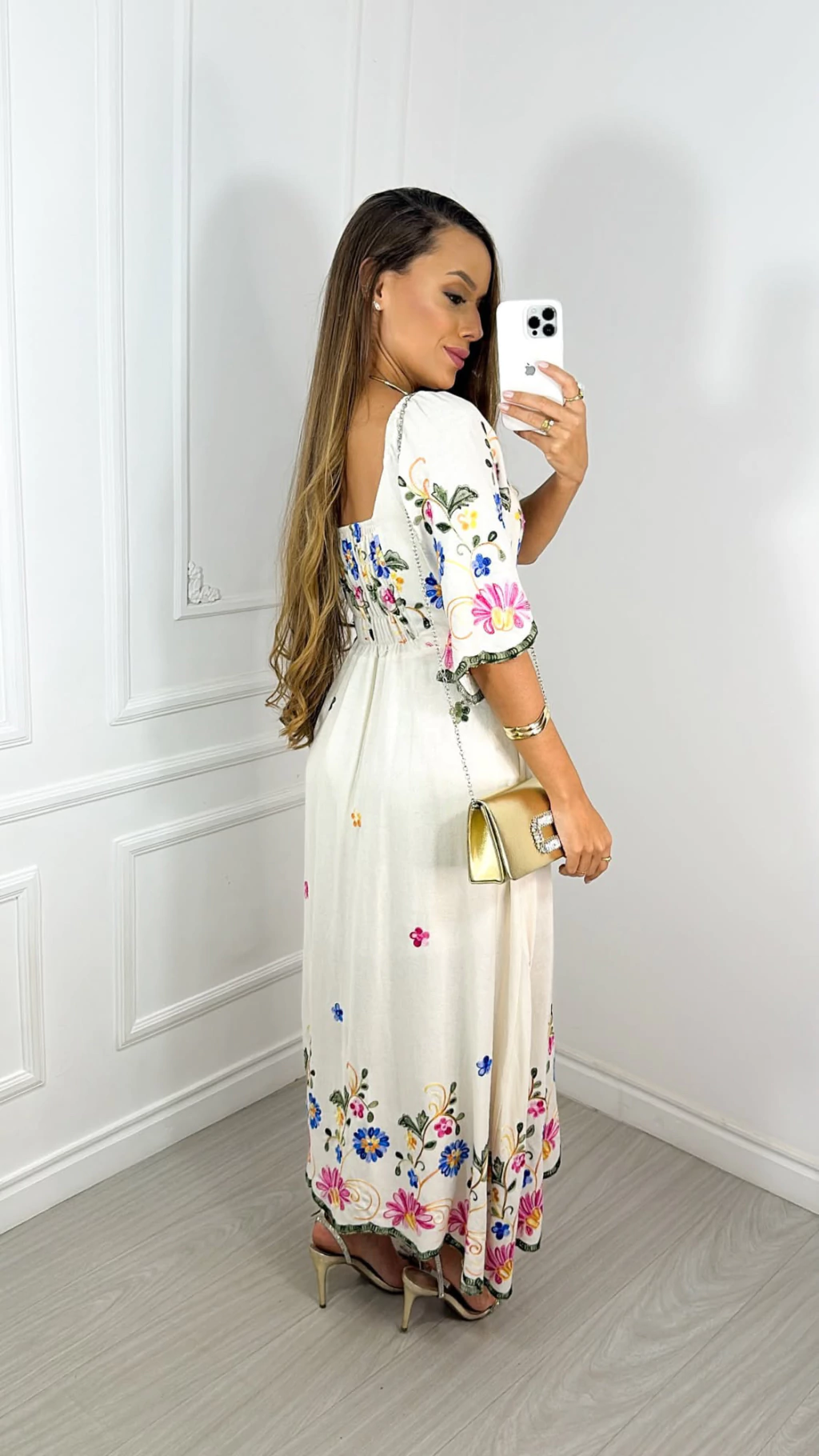 Descubra o Vestido Midi Alana - Linho Bordado, uma peça única que une elegância e conforto. Confeccionado em tecido linho bordado, garante um toque sofisticado e frescor para os dias quentes. Com tamanho único, veste até o 42/44, graças ao lastex nas costas que proporciona ajuste perfeito ao corpo. Ideal para ocasiões especiais ou para compor looks estilosos no dia a dia. Garanta já o seu!